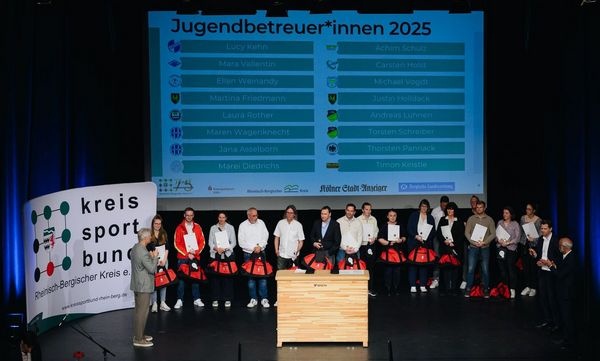 Rheinisch-Bergischer Kreis. Der Rheinisch-Bergische Kreis ist eine Hochburg des Sports. Und das gilt für den Spitzensport ebenso wie für den Breitensport. Die große Bandbreite der herausragenden Leistungen und des vorbildlichen ehrenamtlichen Engagements wurde am Mittwochabend im prallvollen Bergischen Löwen in Bergisch Gladbach bei der Auszeichnung der besten Athletinnen, Athleten und Mannschaften sowie der Verleihung der Jugendbetreuermedaille mehr als deutlich. Das großartige Engagement der insgesamt 16 Trainerinnen und Trainer von Nachwuchssportlerinnen und -sportlern hoben Landrat Arne von Boetticher und der Vorsitzende des Kreissportbundes Uli Heimann hervor.