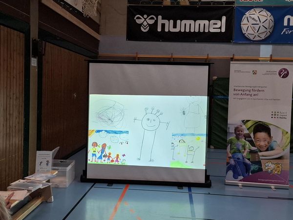 Beim Elternnachmittag in der Sporthalle herrschte eine lebendige und zugleich entspannte Atmosphäre. Während die Kinder nebeneinander spielten und sich bewegten, nahmen auf der anderen Seite der Halle die Eltern an einem Vortrag teil.