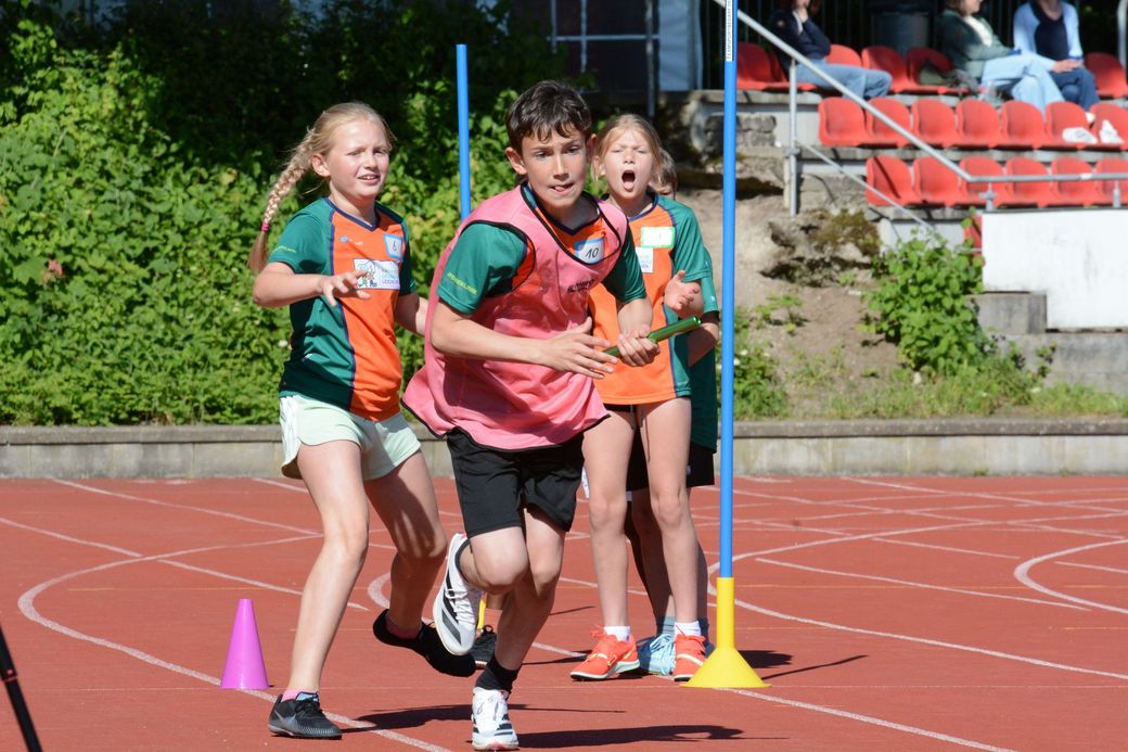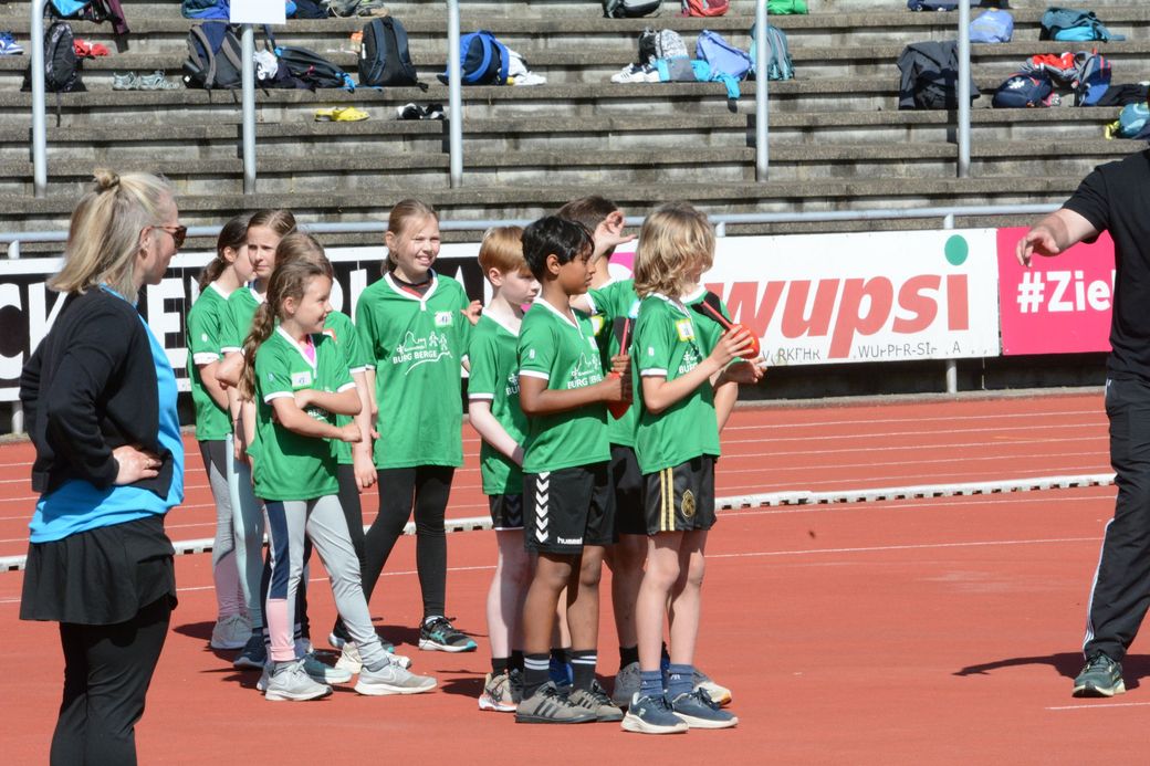 Die teilnehmenden Schulen waren: die GGS Katterbach aus Bergisch Gladbach, die Grundschule Burg Berge aus Odenthal, die KGS Kirchstraße aus Leichlingen, die Dhünntalschule aus Wermelskirchen, die GGS Hoffnungsthal aus Rösrath, die OGGS Immekeppel aus Overath sowie die GGS Biesfeld aus Kürten. Besonders überzeugte dabei die KGS Kirchstraße, die als Titelverteidiger antrat und bereits im vergangenen Jahr sowohl das Kreis- als auch das Bezirksfinale für sich entscheiden konnte. Auch in diesem Jahr dominierte das Team nahezu alle Disziplinen und musste sich lediglich im Zonenweitsprung knapp der GGS Hoffnungsthal geschlagen geben. Mit dieser beeindruckenden Leistung sicherte sich die KGS Kirchstraße verdient den ersten Platz und wird den Rheinisch-Bergischen Kreis im Juni auf Bezirksebene vertreten.